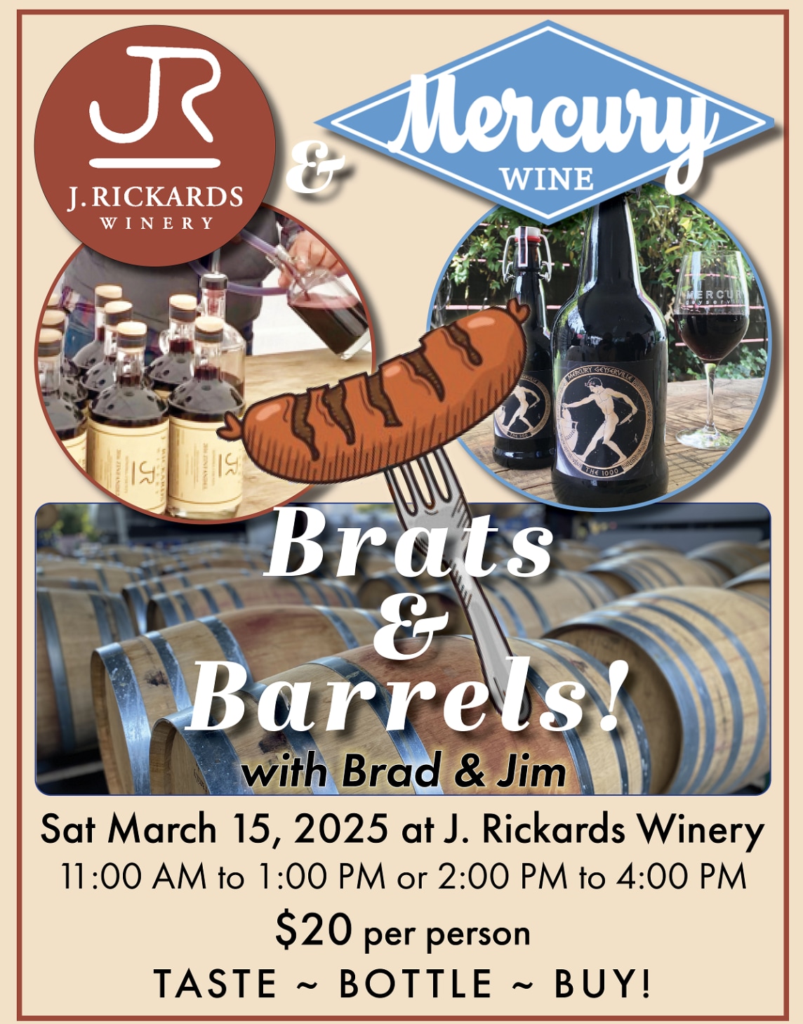 And We're Serving Up Tasty Sausage Bites along with additional specially selected J. Rickards and Mercury wines! It's All Happening at J. Rickards Winery!